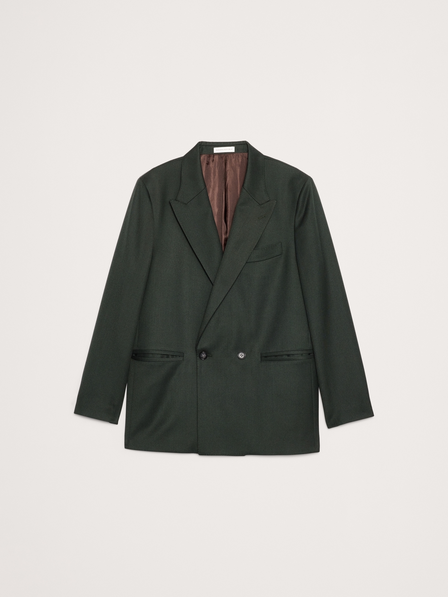 A very cool suit for fall and beyond. We kept the fit relaxed for this double-breasted suit jacket, crafting it in a warm wool-blend with a pronounced twill texture.