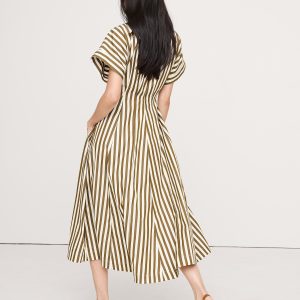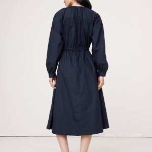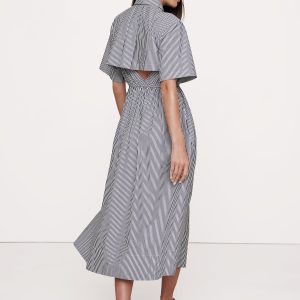 Cotton Poplin Asymmetrical Shirt Dress - Navy Blue Stripe, XL