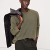 Front pockets. Rear welt pocket with button closure.