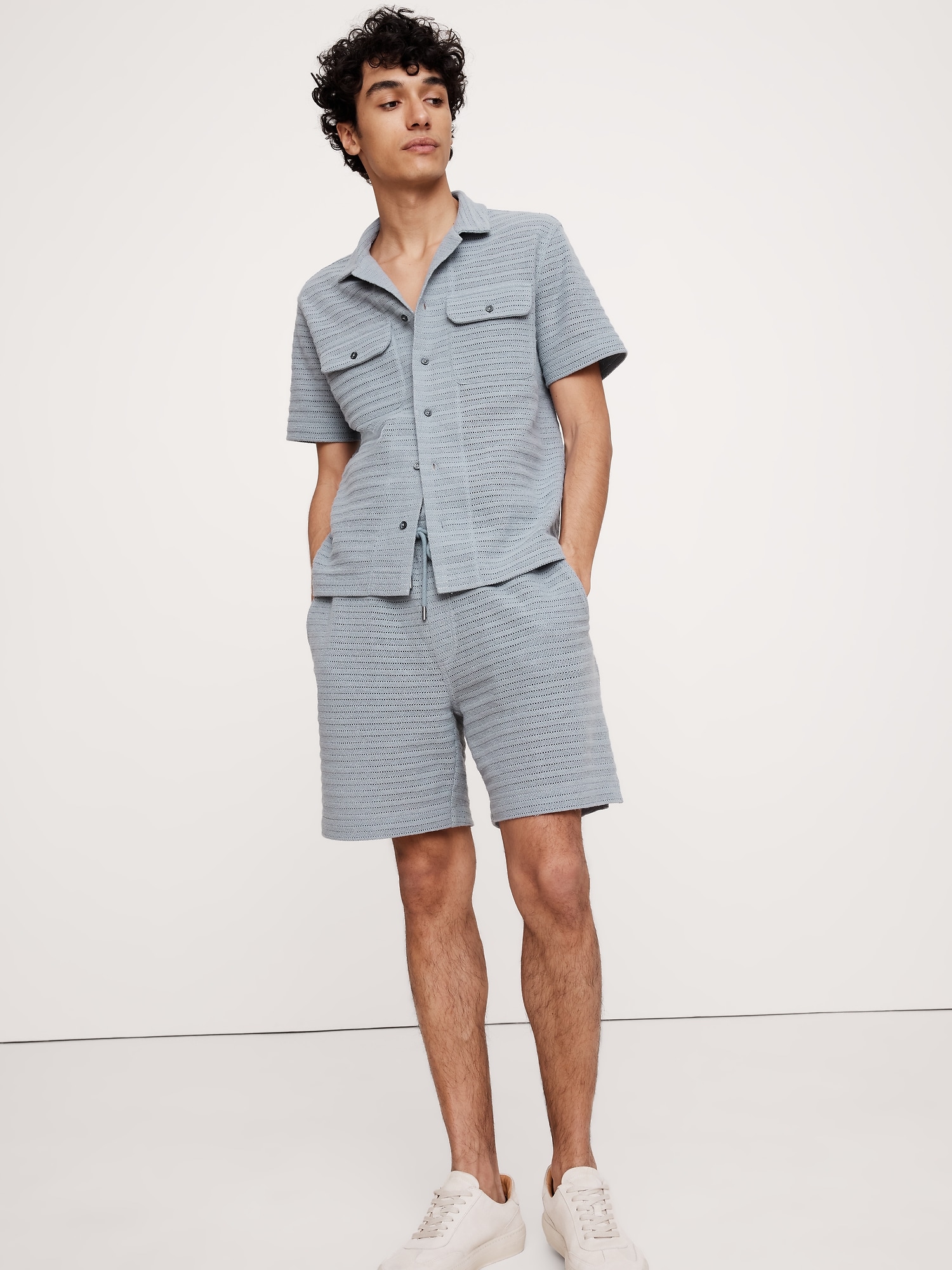 The vibe is off-duty. These drawstring shorts are cut from a textured herringbone fabric we love for its retro look and open stitches. Style with the matching resort shirt or wear with a classic henley tee. fit: A straight and easy fit.