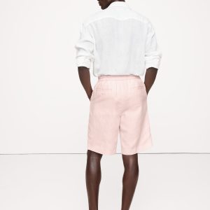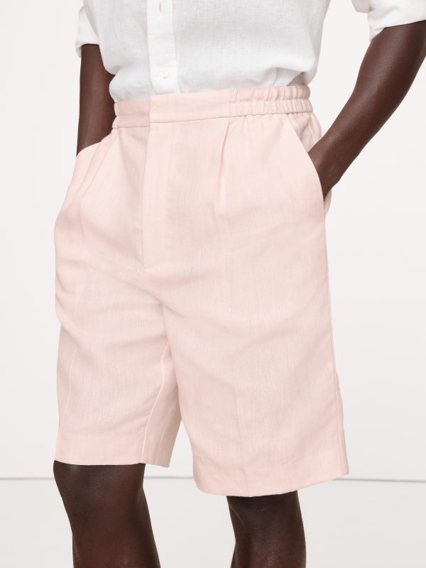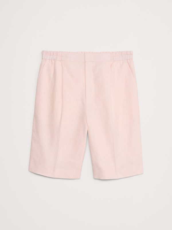 Cut from 100% linen—seen here in a soft délavé pink—these tailored shorts have an elastic waistband at back and a fully functional fly. Try it with the matching suit jacket—hello, wedding season.