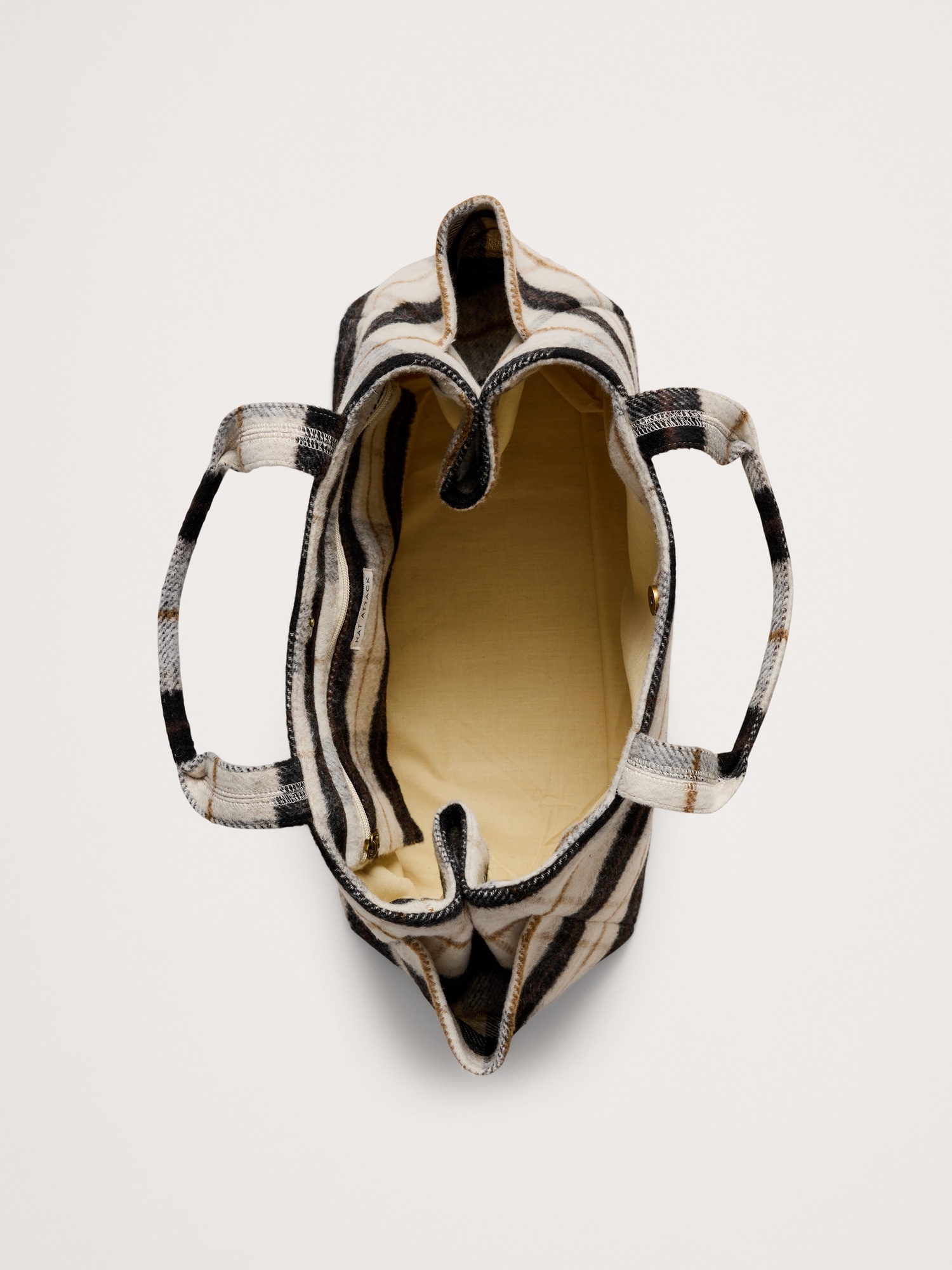A Hat Attack original, perfectly sized for weekend getaway, in a cold-weather ready plaid fabric. Plus, it has a special strap at the back to slide over your roller suitcase handle.