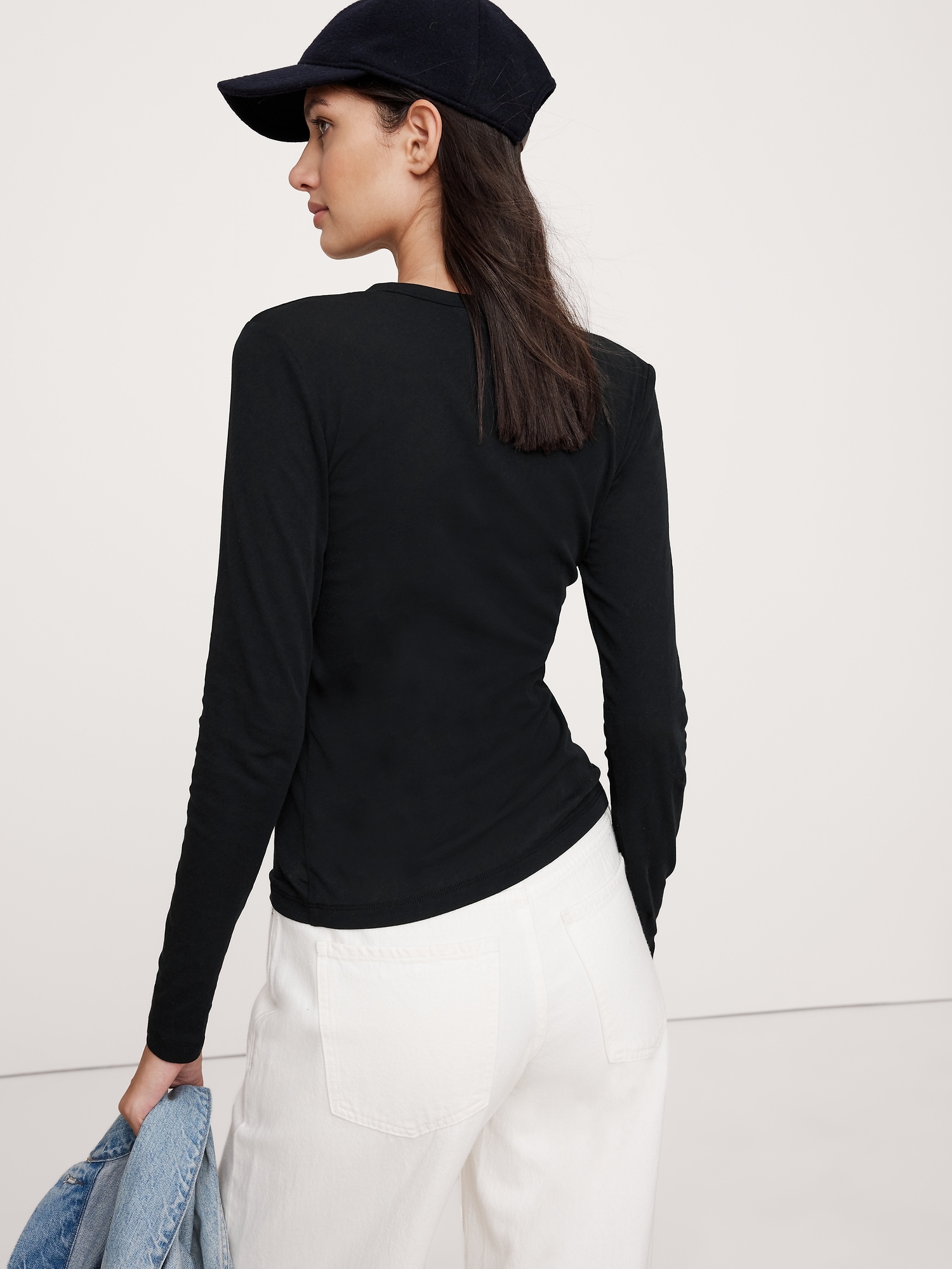 Honestly, maybe our best tee to date. We took our time perfecting the fit of this cotton t-shirt, reaching for one of our lightest cotton jerseys so it’s just-right for summer. Slim. Sits close to the body.