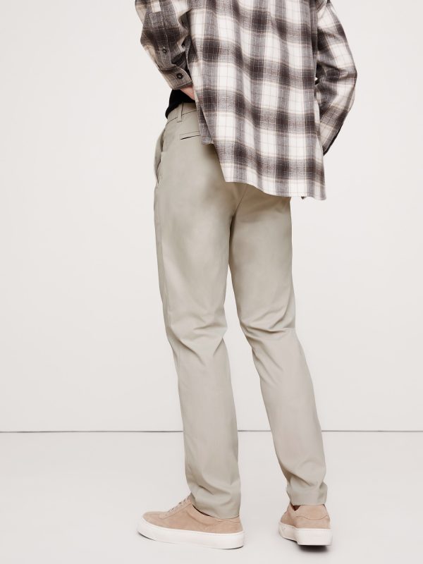 If chinos could be overachievers—this lightweight chino does the most thanks to a Solotex® twill fabric that balances performance, comfort, and a put-together appearance. Plus, our designers added concealed elastic at the back waist for a custom fit. Water-Repellant, Breathable, 4-Way StretchSlim Fit: A slim fit designed for those who like more room through the seat and thigh. Mid-rise (11\”), slim though hip and thigh with a tapered leg.