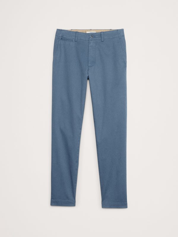 Modeled after a vintage pair of officer’s chinos, we cut this slim-fit pant from a stretchy, organic cotton twill. We added an extra stone wash for a broken-in look and an already-loved feel.