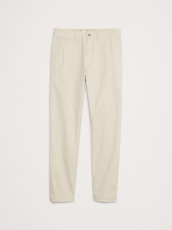Modeled after a vintage pair of officer’s chinos, we cut this slim-fit pant from a stretchy, organic cotton twill. We added an extra stone wash for a broken-in look and an already-loved feel.