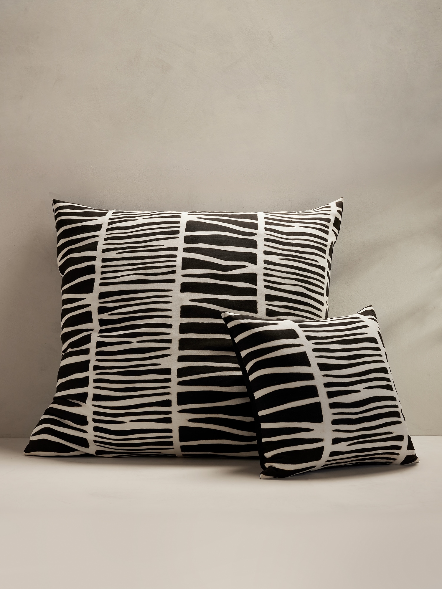 Proof that beauty can be found everywhere, even the earth, the artisans of the Le Ndomo social enterprise in Mali use traditional mud-dyeing and weaving to create eye-catching Bogolan mud cloth pillows of lush cotton. An intricate and ancestral practice, mud-dyeing begins with the collection of mud from riverbeds, followed by a lengthy fermentation in clay pots for up to a year, which is then used like paint to create bold, beautiful patterns. LE NDOMO: Crafted in partnership with Mali’s Le Ndomo, a social enterprise founded in 1990 to both preserve the ancestral mud-cloth dyeing practices, and create employment opportunities through training young people who have not had the chance to study. Invisible zip closure. Pillow inserts are sold separately and are sized slightly larger than our pillow covers to create a fuller effect. Handmade in Mali. #618878