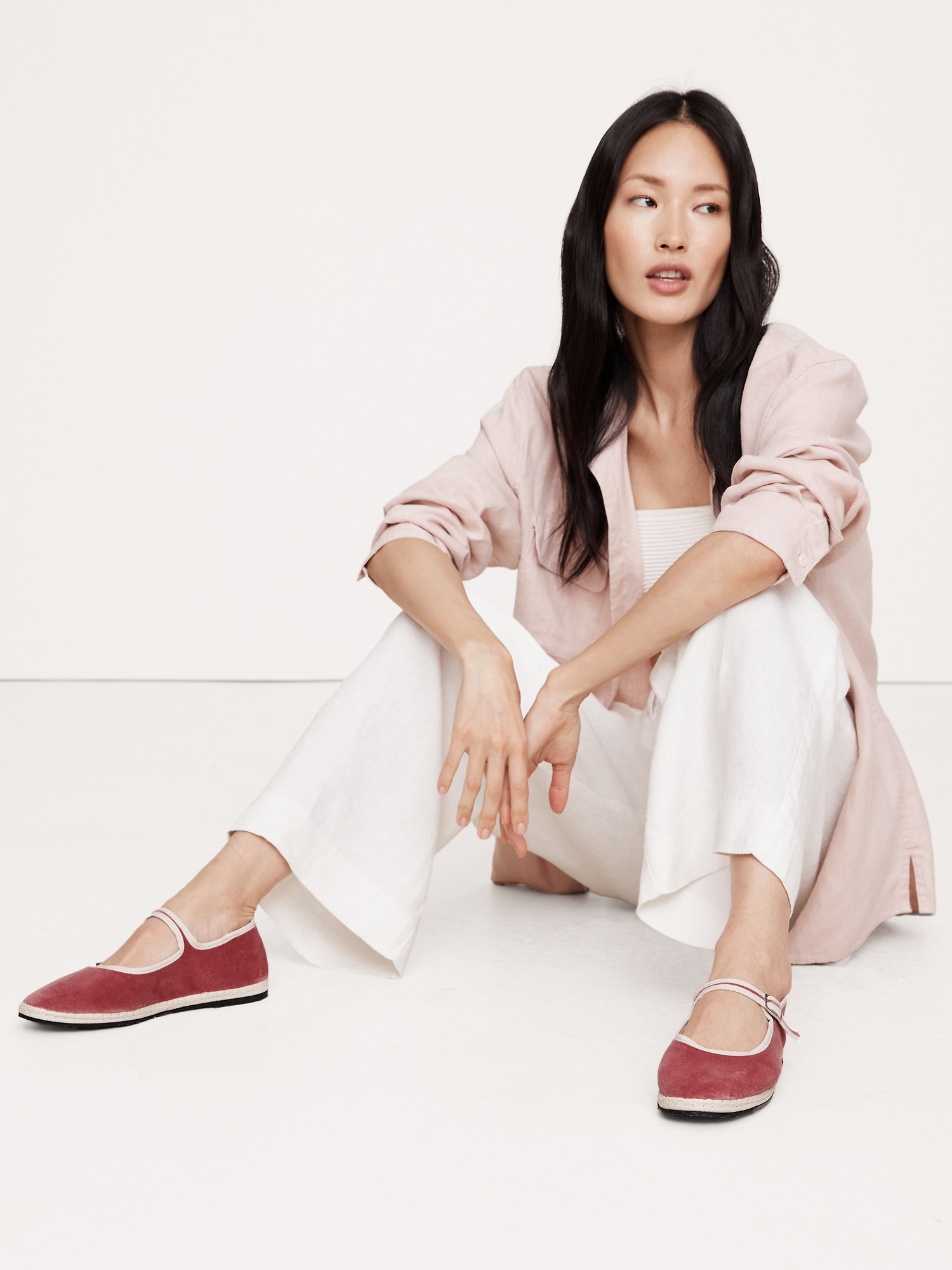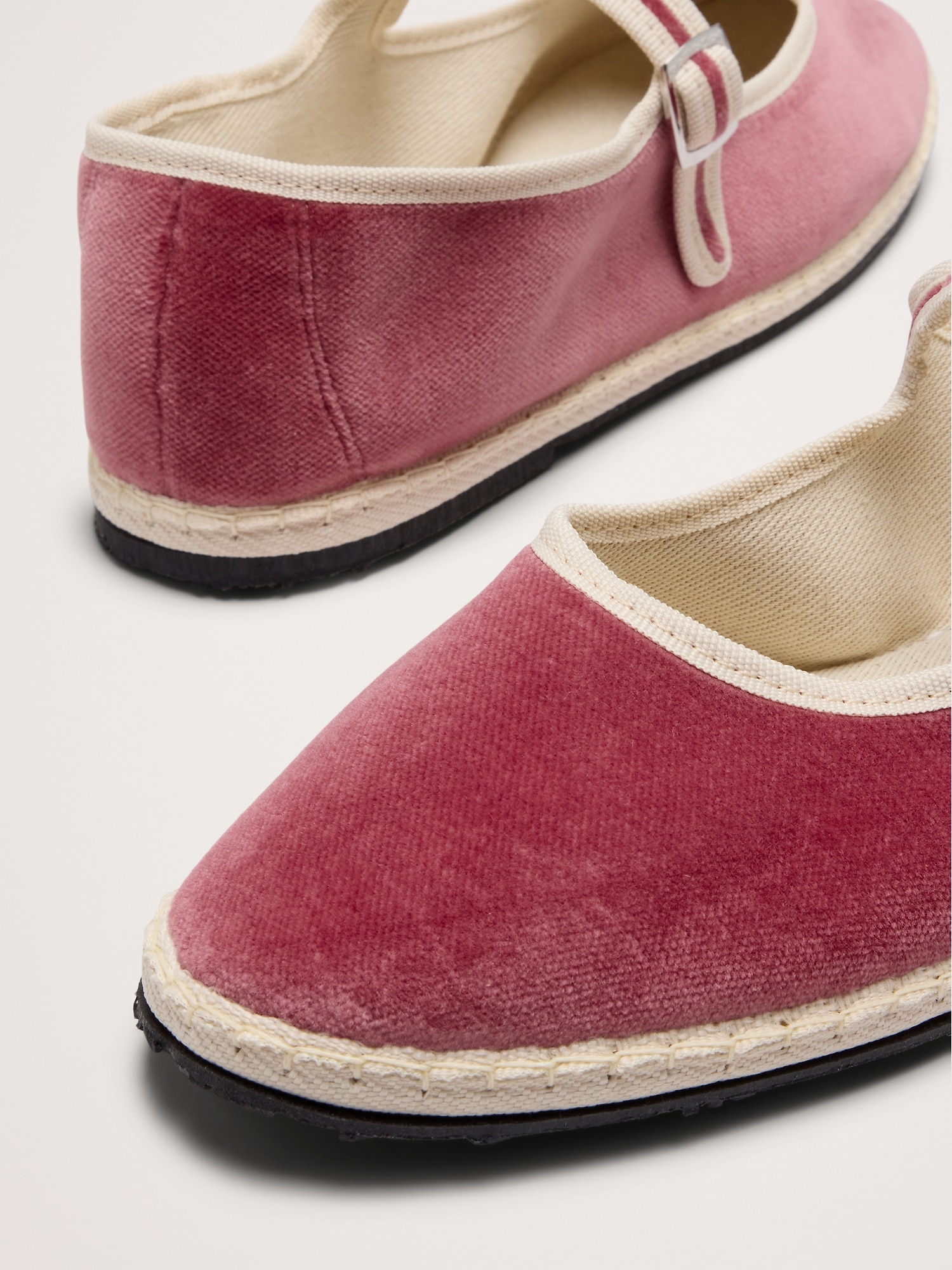 This women’s Venetian shoe is characterized by its updated Mary-jane styling. Each pair is hand-sewn in Northern Italy from organic cotton velvet with recycled bicycle tire soles. Did we mention they can also be washed?