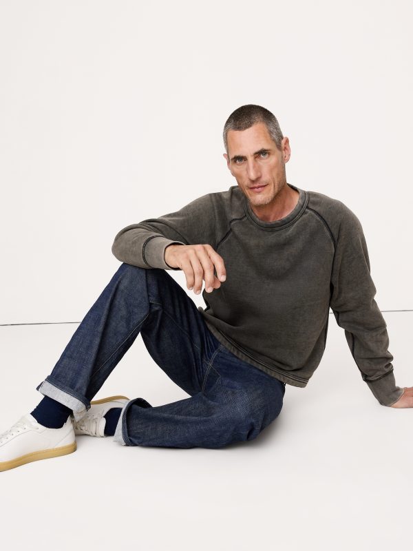 Not just terry. A fabric we love for its all-weather weight. Here, a boxy version of your fave sweatshirt, finished with a garment wash (for softness and lived-in color) in an on-trend above-hip length.