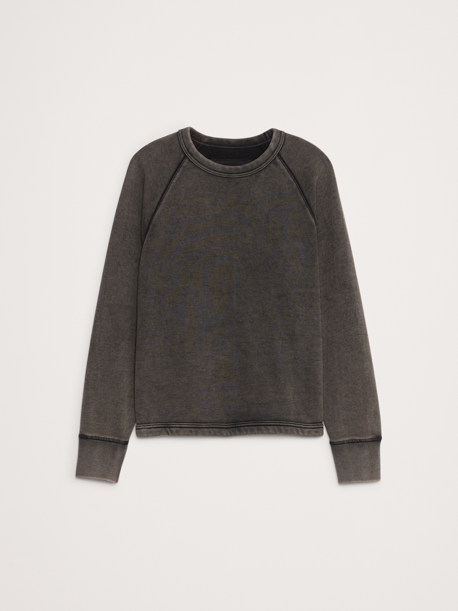 Not just terry. A fabric we love for its all-weather weight. Here, a boxy version of your fave sweatshirt, finished with a garment wash (for softness and lived-in color) in an on-trend above-hip length.