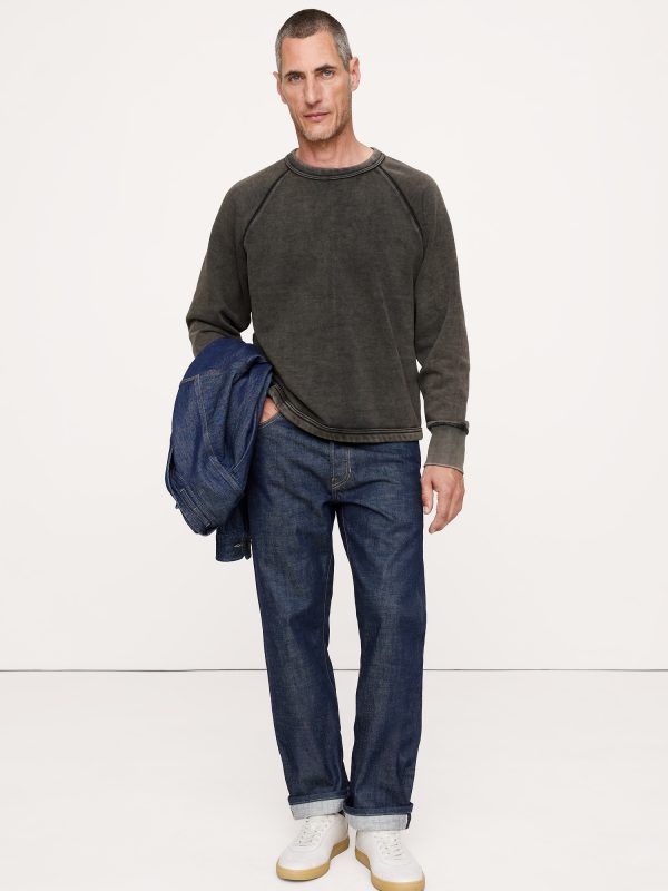 Not just terry. A fabric we love for its all-weather weight. Here, a boxy version of your fave sweatshirt, finished with a garment wash (for softness and lived-in color) in an on-trend above-hip length.