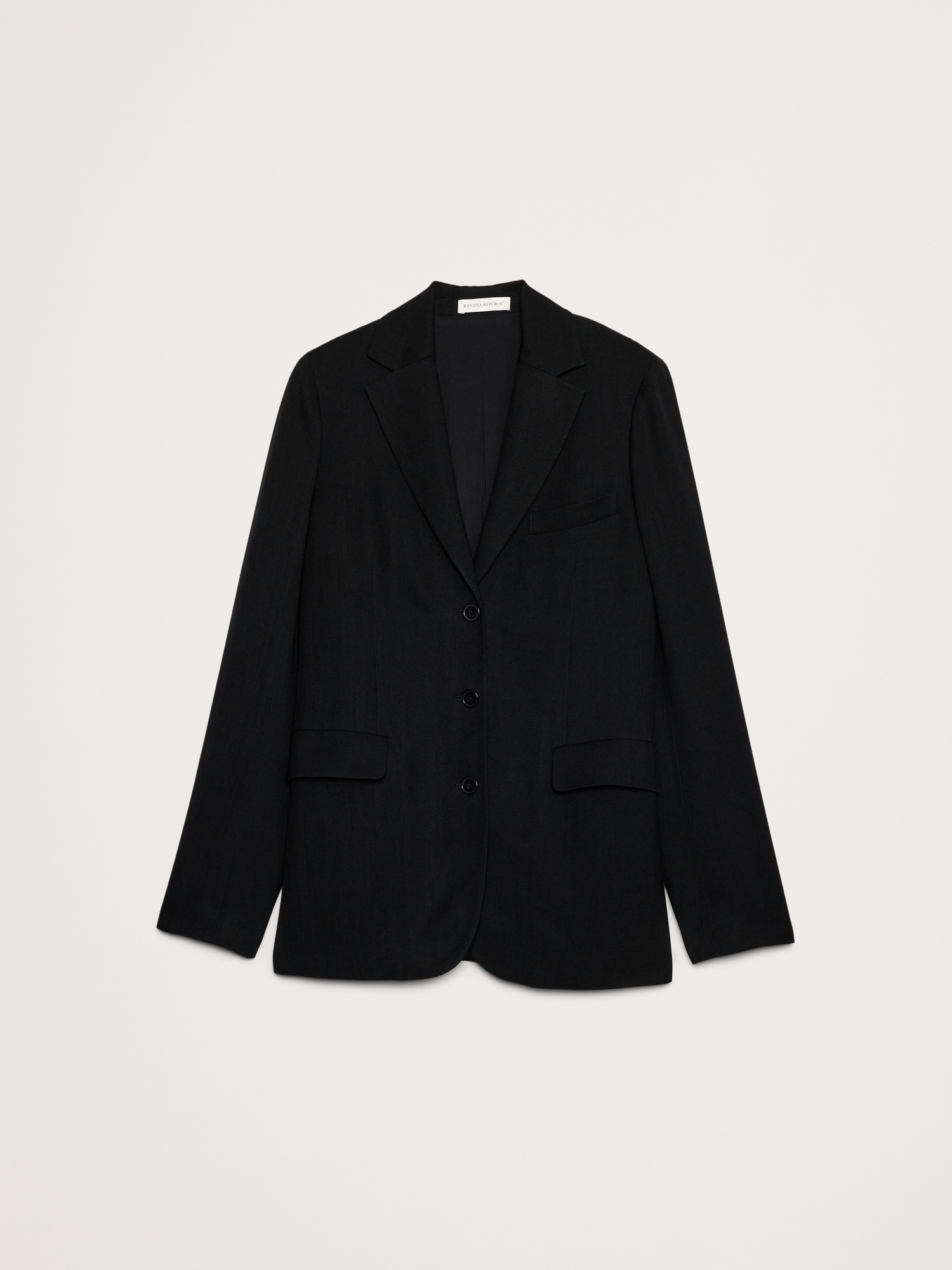 The vibe here is relaxed, yet put-together. We cut blazer in an easy, boyfriend fit using our premium drapey twill—a fabric we love because it strikes the perfect balance between tailored and casual-cool. Plus, we added an adjustable belt at the back to define the waist.