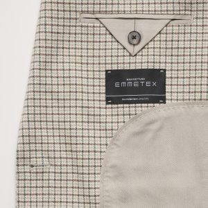 Notch lapel with single-button front.