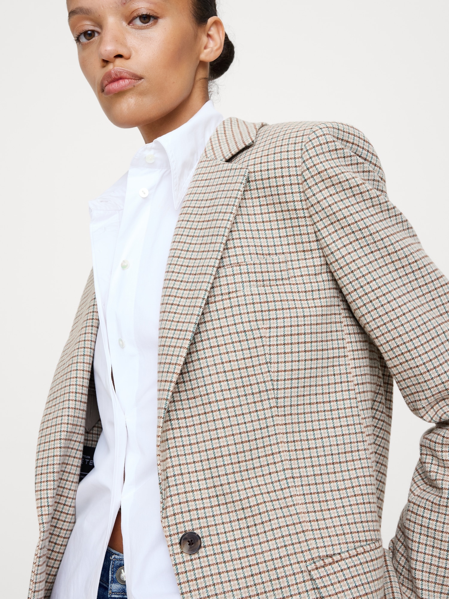 Our take on a classic borrowed-from-the-boys silhouette, we cut this boyfriend-fit blazer for a tailored-yet-relaxed look. For fabric, reached for an Italian flannel fabric that’s warm-handed and a little dressed up.
