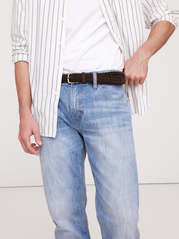 We love a braided belt. This one is braided from strips of sturdy and soft suede. Pairs well with denim, chinos, and long weekends.