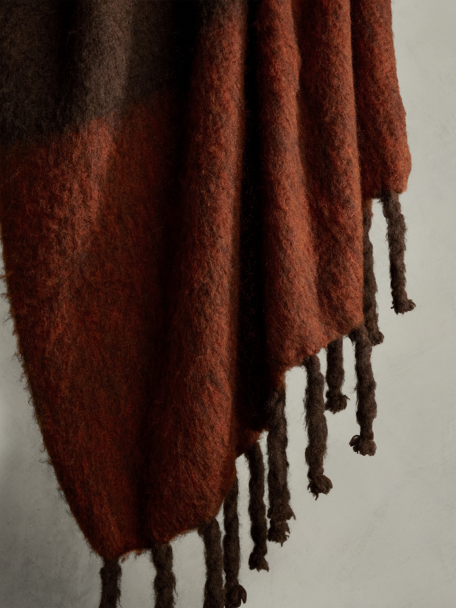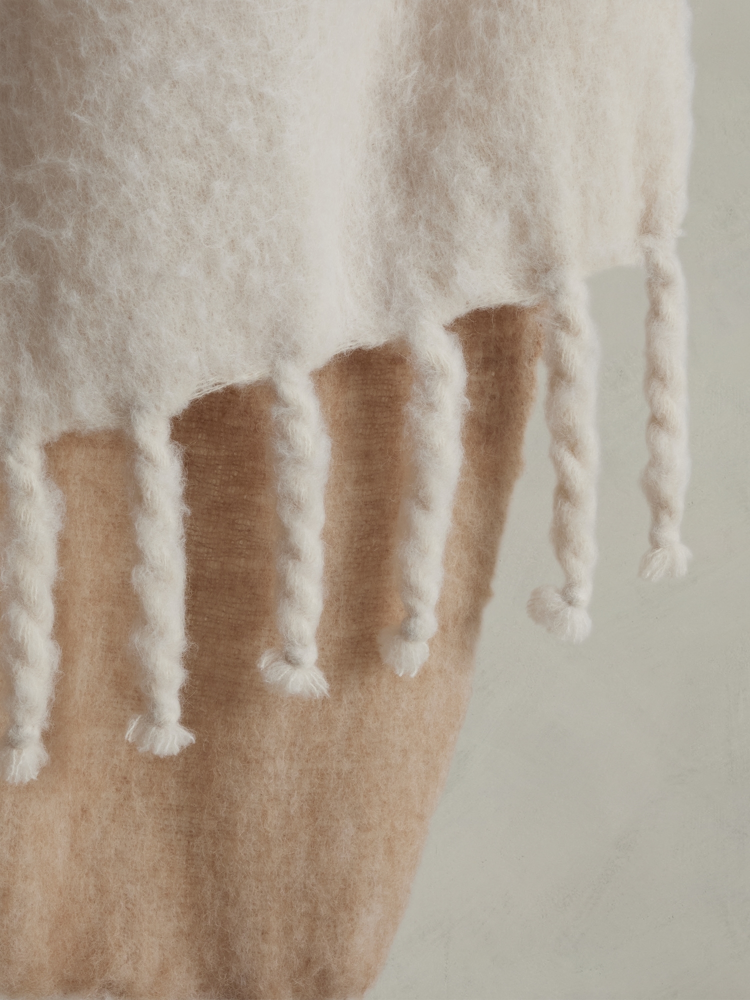 Age-old techniques meet modern motifs. Handcrafted in Spain of brushed wool, our silky-soft, feather-light throw features a contemporary color-block design accented with long, twisted fringe that’s braided and knotted by hand. 8
