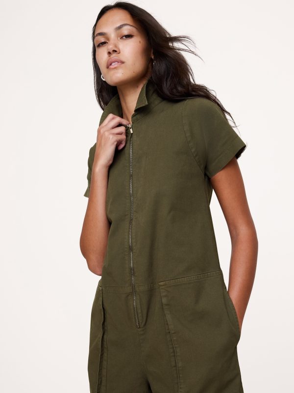 Just a little something we cut this classic utility jumpsuit from rugged, stretch-cotton canvas finished with a garment-wash for softness and lived-in color.