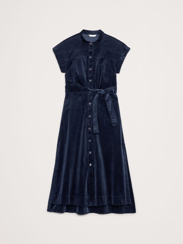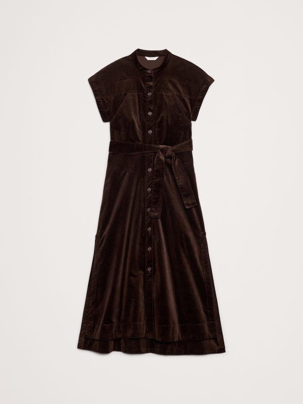 When it comes to a good shirt dress, no one does it quite like us. Here, we kept the silhouette clean with a banded collar—the better to show off this soft, fine-wale corduroy. Fit Flare: Fitted bust and waist with a flare skirt. Banded collar with button front. Belted waist. Front pockets. Side slits. Unlined. #817743