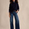 Column fit: High rise. Fitted waist, straight through the thigh and leg.