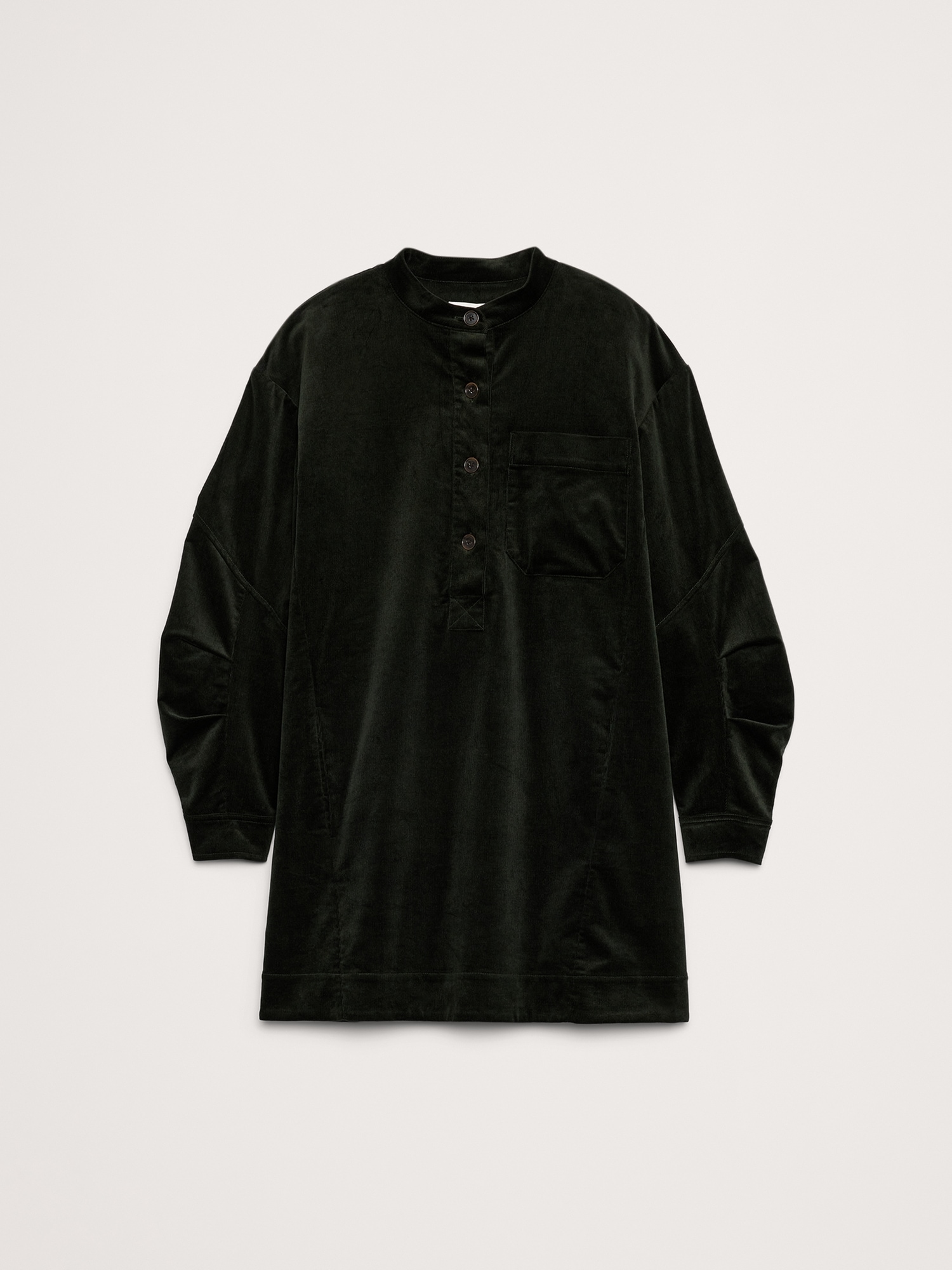 A classic in every sense of the word, we reimagined the popover shirt as a dress, keeping the fit easy and a little short—ideal for playing with proportions.