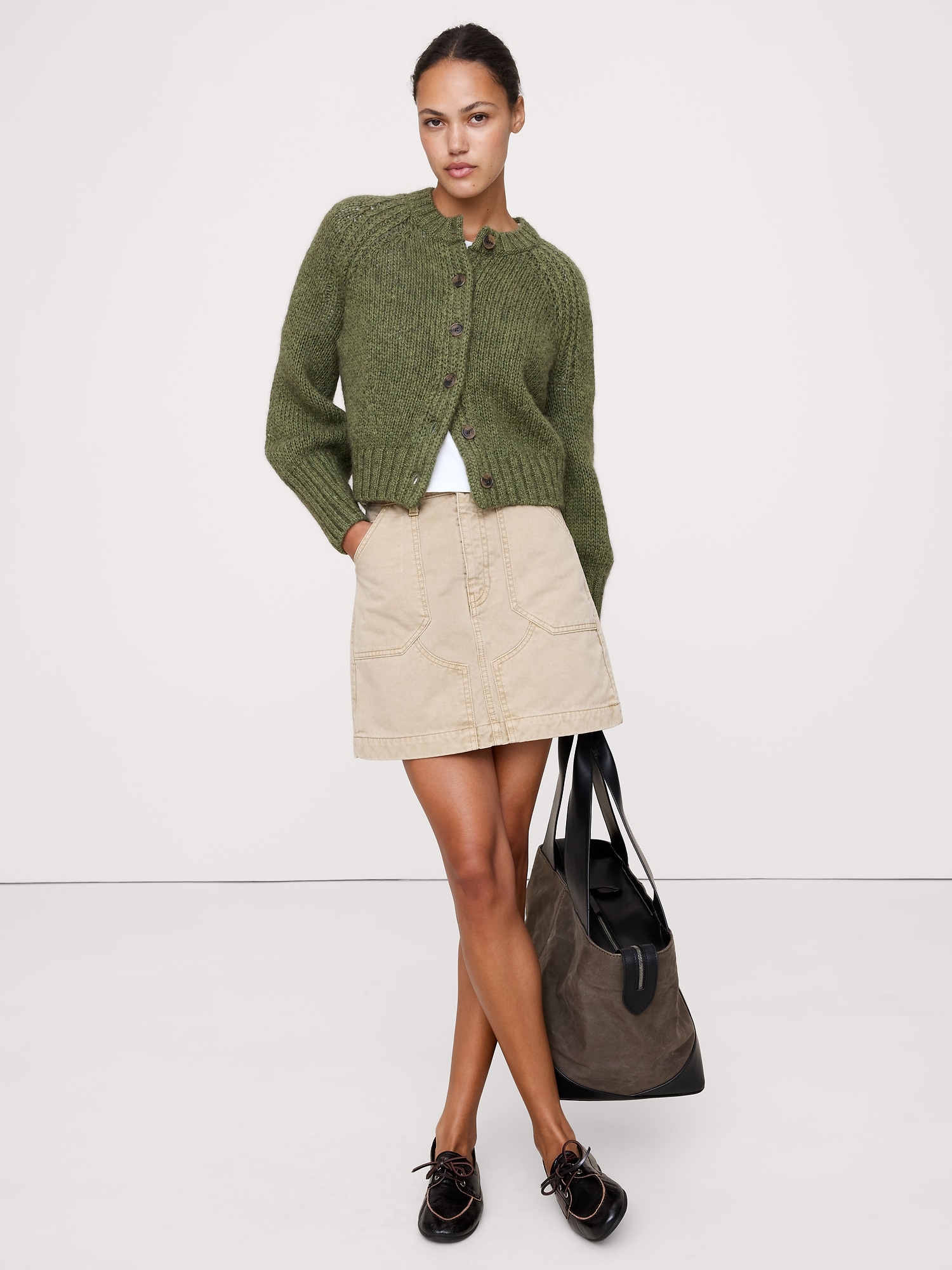 Your other cardigans will be jealous. This chunky cardigan is crafted from a soft blend of cotton, luxurious alpaca, and warm Merino wool, in a slouchy silhouette that still looks pulled-together.