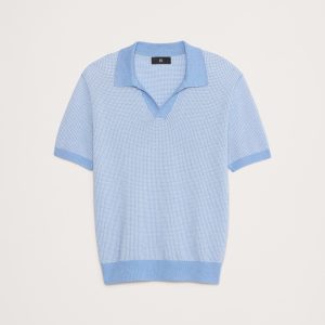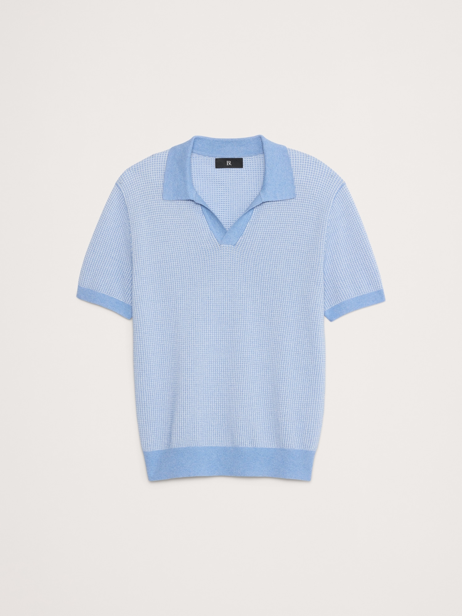 We love a retro sweater polo so we dreamed this one up in warm-weather ready cotton and linen. Look closely: it uses an intricate two-color jacquard stitch.