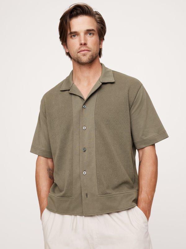 A cross between your favorite polo and a resort shirt, we love the open, airy knit panels of this one—in 100% cotton.