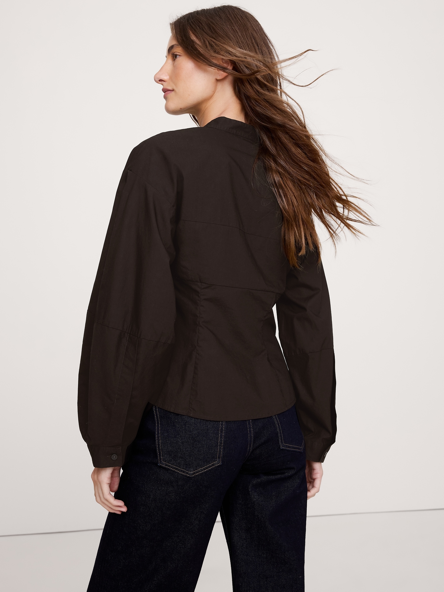 Deconstructed, reconstructed. This balloon-sleeve shirt nods at the season’s corset trend with a sweetheart bodice and corset-inspired panels at the waist—in our 100% cotton poplin.