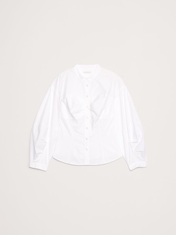 Deconstructed, reconstructed. This balloon-sleeve shirt nods at the season’s corset trend with a sweetheart bodice and corset-inspired panels at the waist—in our 100% cotton poplin.