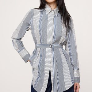 It’s these easy cotton poplin shirts we’re loving right now. This one is tunic length and has an adjustable slider belt to define the waist.