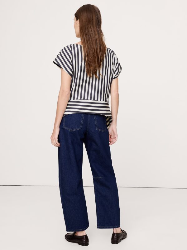 Deconstructed, reconstructed. This cotton poplin shirt borrows elements from the classic shirt, with a boatneck and asymmetrical hem twist. Let the bottom sash down or tie at the side to cinch the waist. Relaxed fit: Relaxed fit through shoulders, chest and waist. Boatneck. Button detail and asymmetrical hem. Unlined. #825954