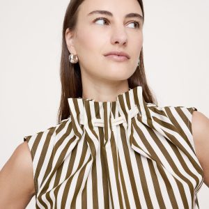 Cotton Poplin Cinch-Neck Top