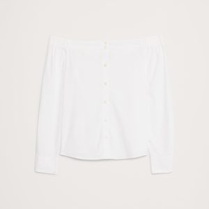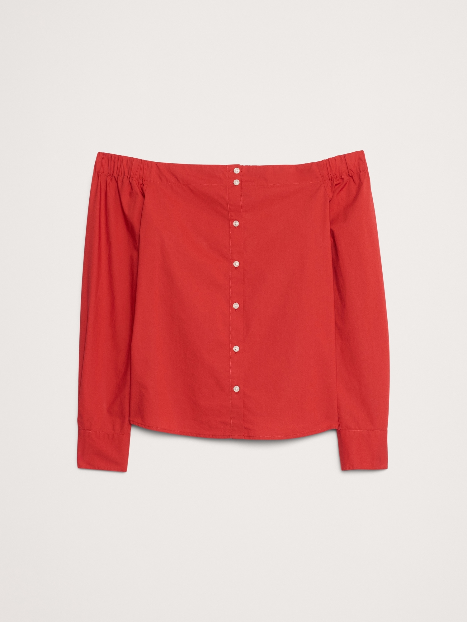 We reimagined the classic button-down shirt in an off-the-shoulder silhouette—in our premium 100% cotton poplin. Classic Fit: A straight and easy fit. Off-shoulder neckline. Button front. Unlined. #826022