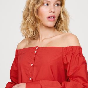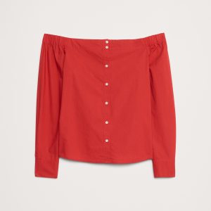 We reimagined the classic button-down shirt in an off-the-shoulder silhouette—in our premium 100% cotton poplin.