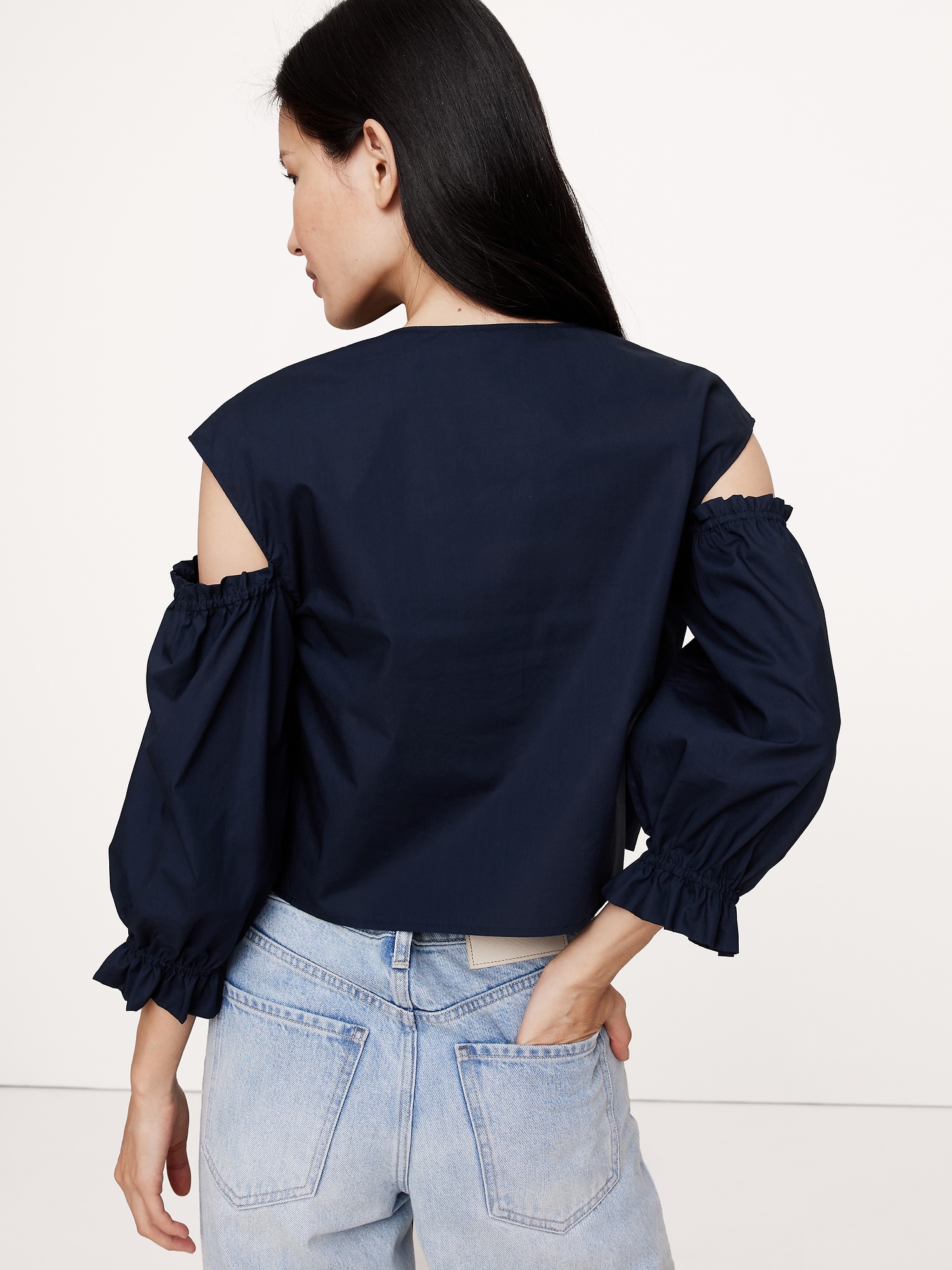 Cotton Poplin Puff-Sleeve Cropped Top