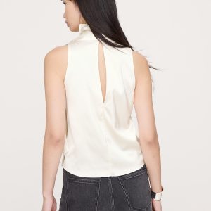 V-neck with tie front closure.