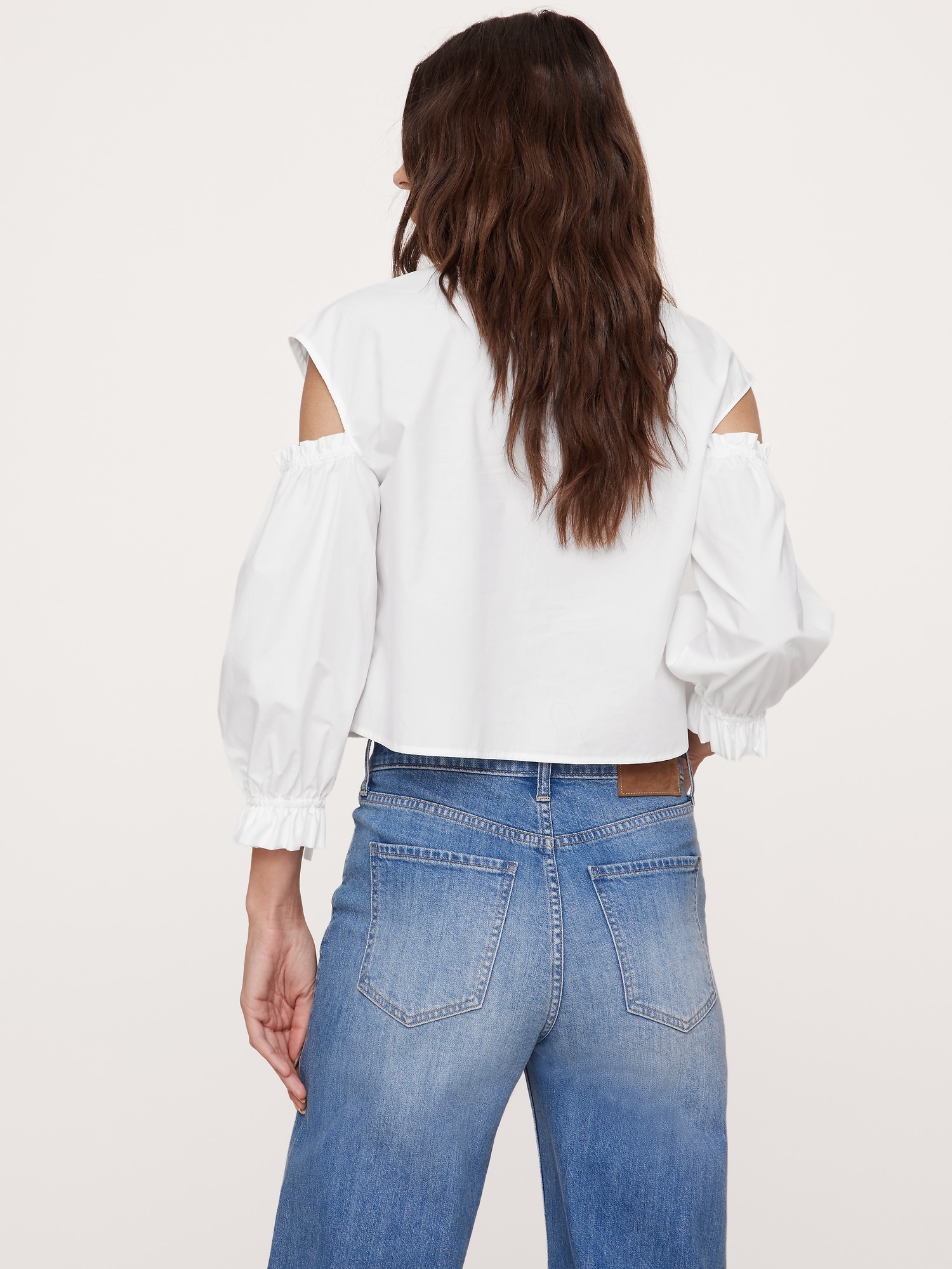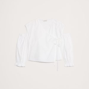 We cut this easy top with a wrap front and cut-out details—in our premium 100% cotton poplin.