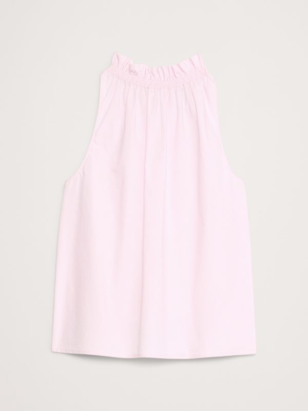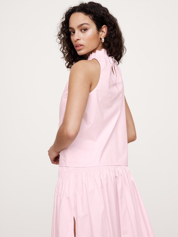 We love poplin because it transcends trends. Here, a ruffle-neck top in premium 100% cotton poplin. Pair with the matching smocked maxi skirt to make it a set.