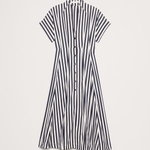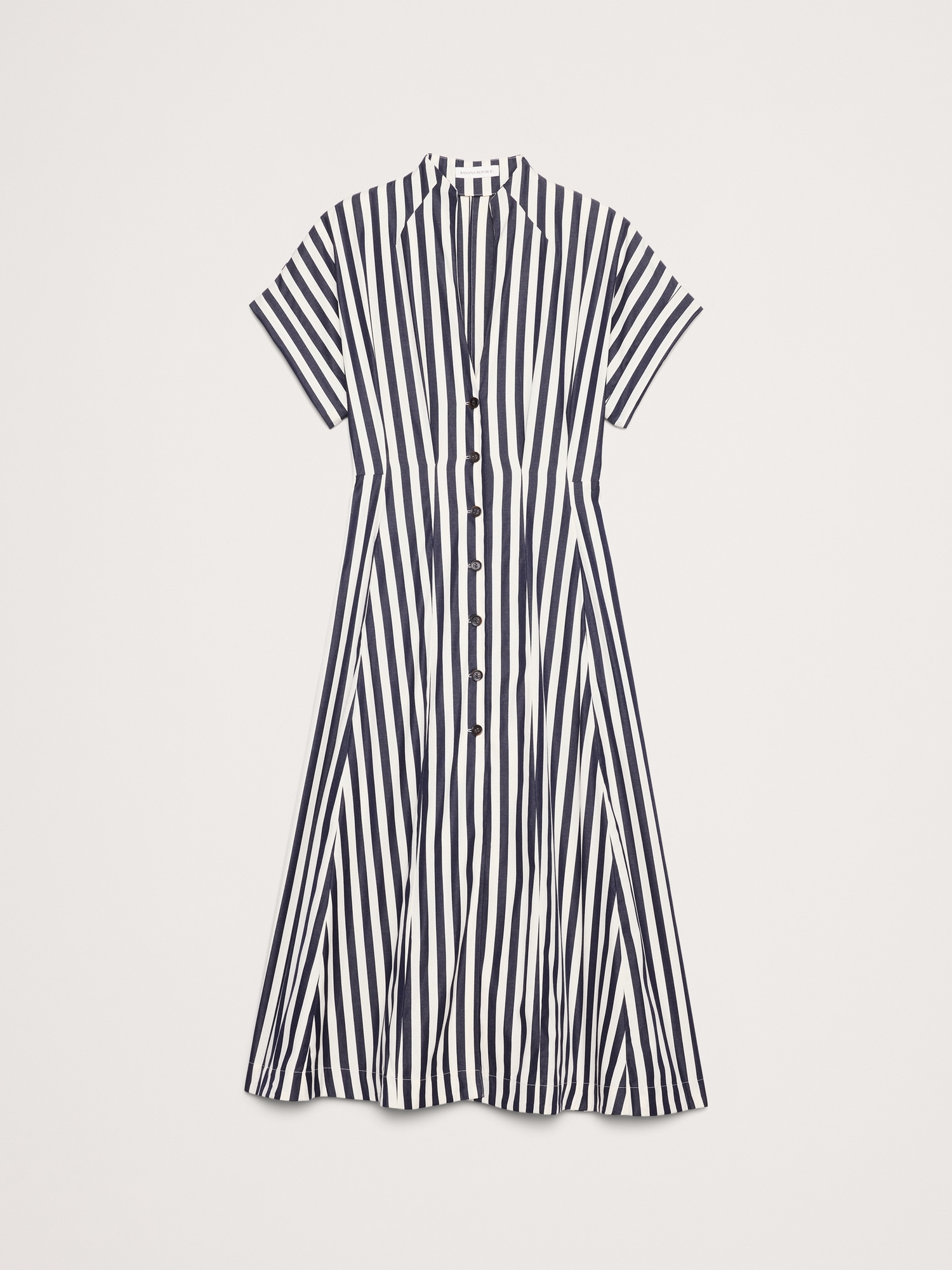 We can’t decide what we love most about this dress: the low, collarless neckline or the seamed accents that gather into pleats that define the waist. We cut it in our signature cotton poplin so you can style it now with ankle boots and an oversized shirt jacket and wear it later with sandals and a big beach hat.