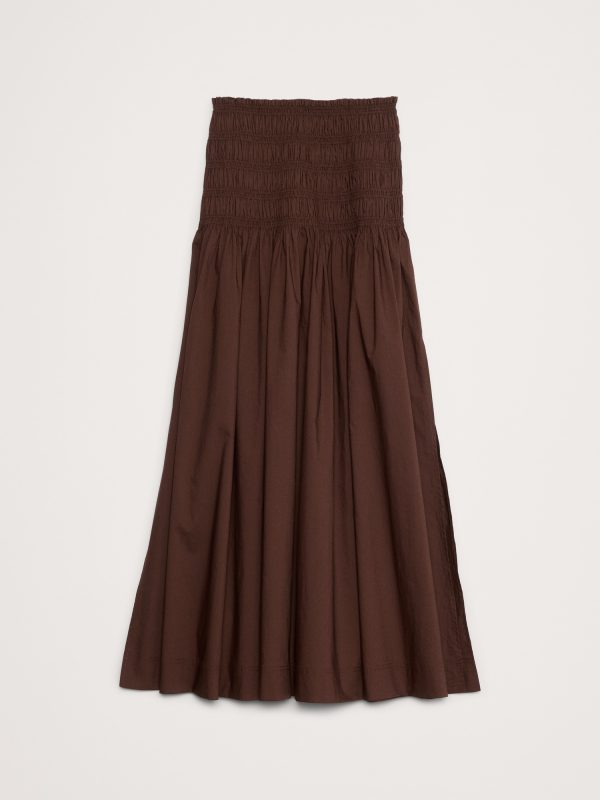 Cotton Poplin Smocked-Waist Maxi Skirt