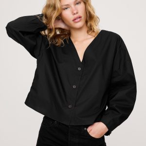 Button this cotton poplin top all the way up or leave it slightly open and style it off the shoulder for an at-ease effect.