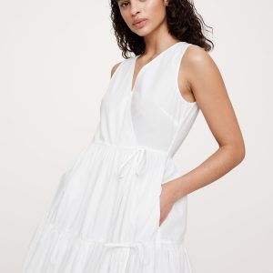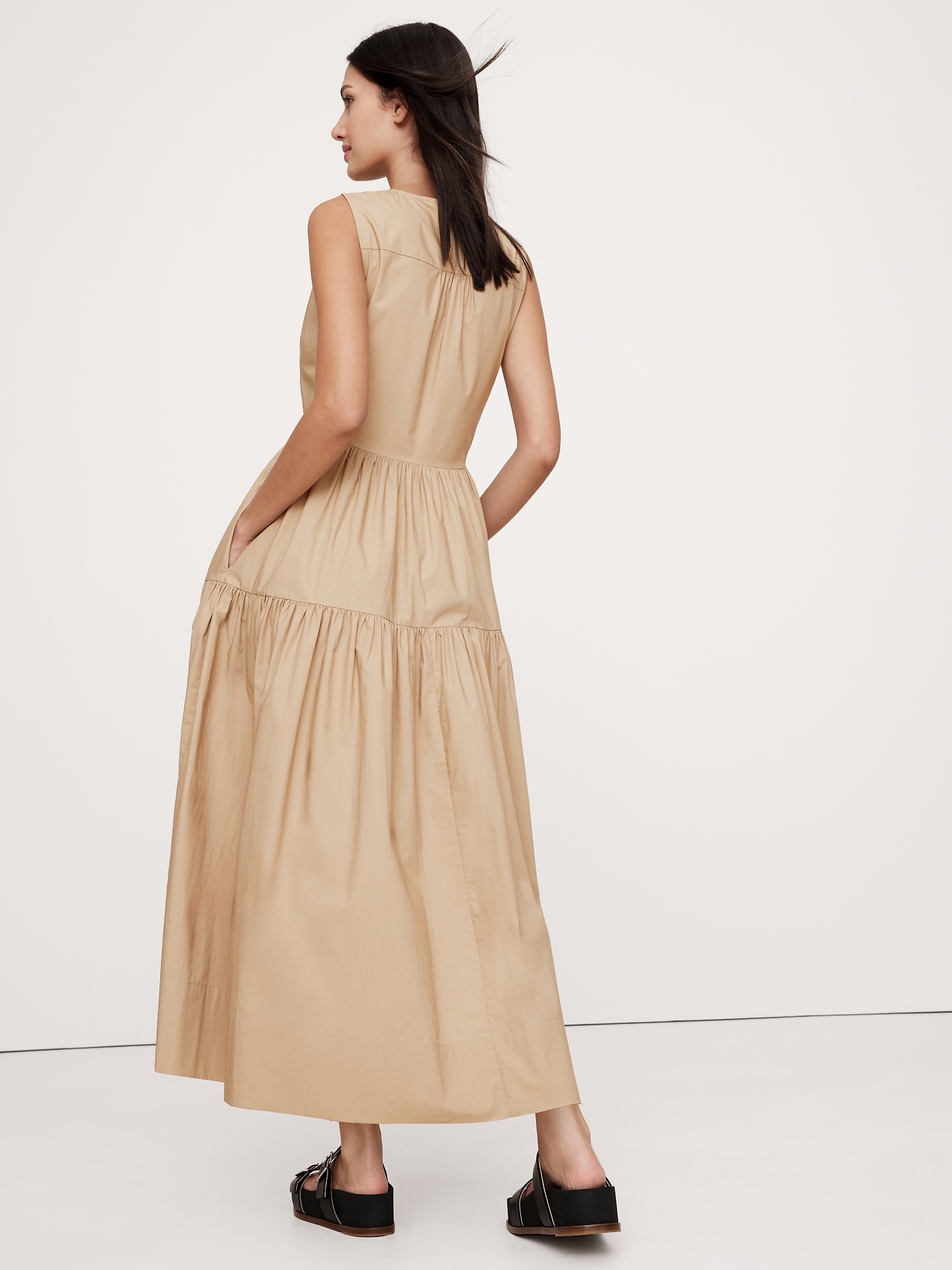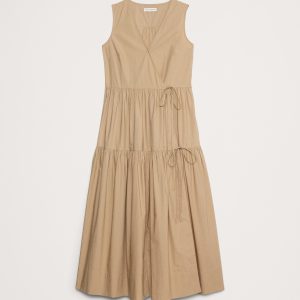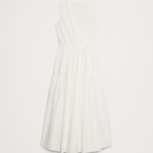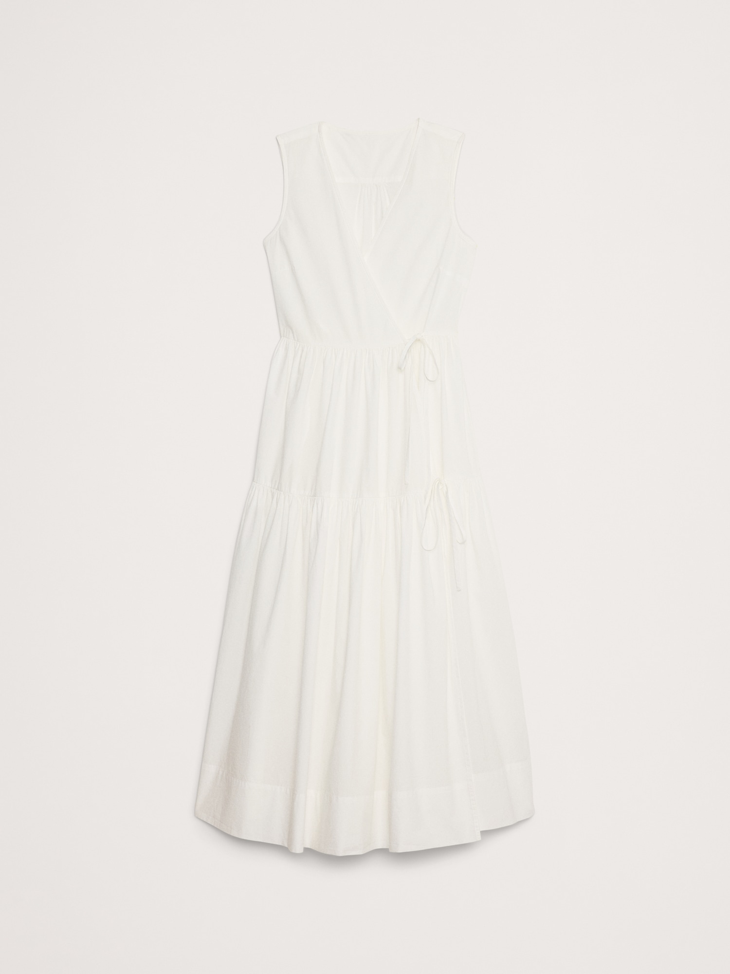 The dress we’ll have on repeat all summer. This tiered wrap dress is crafted in premium cotton poplin. Dress it up with heels and jewelry, or toss it on over your bathing suit and head to the beach.