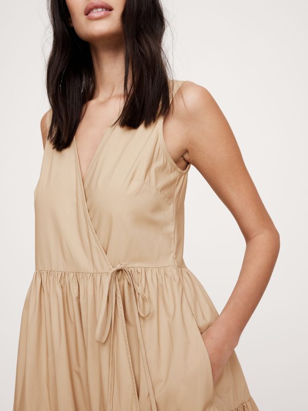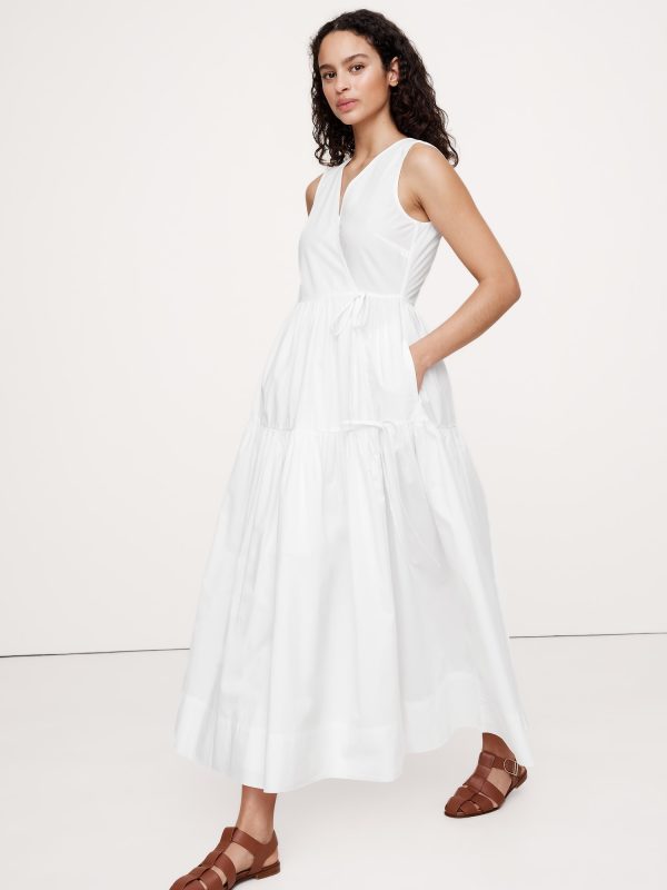 The dress we’ll have on repeat all summer. This tiered wrap dress is crafted in premium cotton poplin. Dress it up with heels and jewelry, or toss it on over your bathing suit and head to the beach.