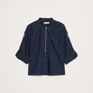 Cotton Poplin Zip Popover Top