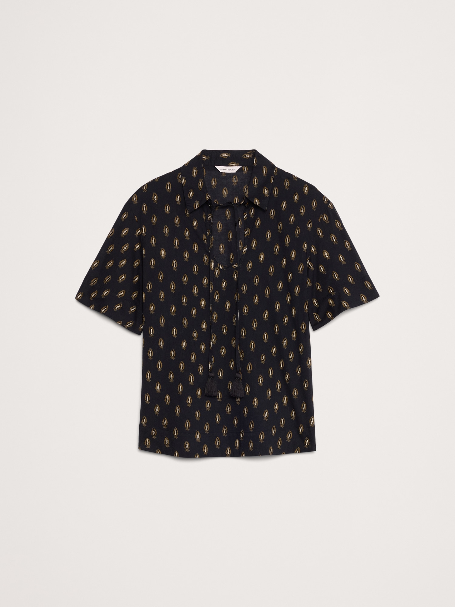 An easy top with a twist. We added a keyhole cutout and a tassel tie to the neckline of this popover shirt, in our lightweight cotton lawn.