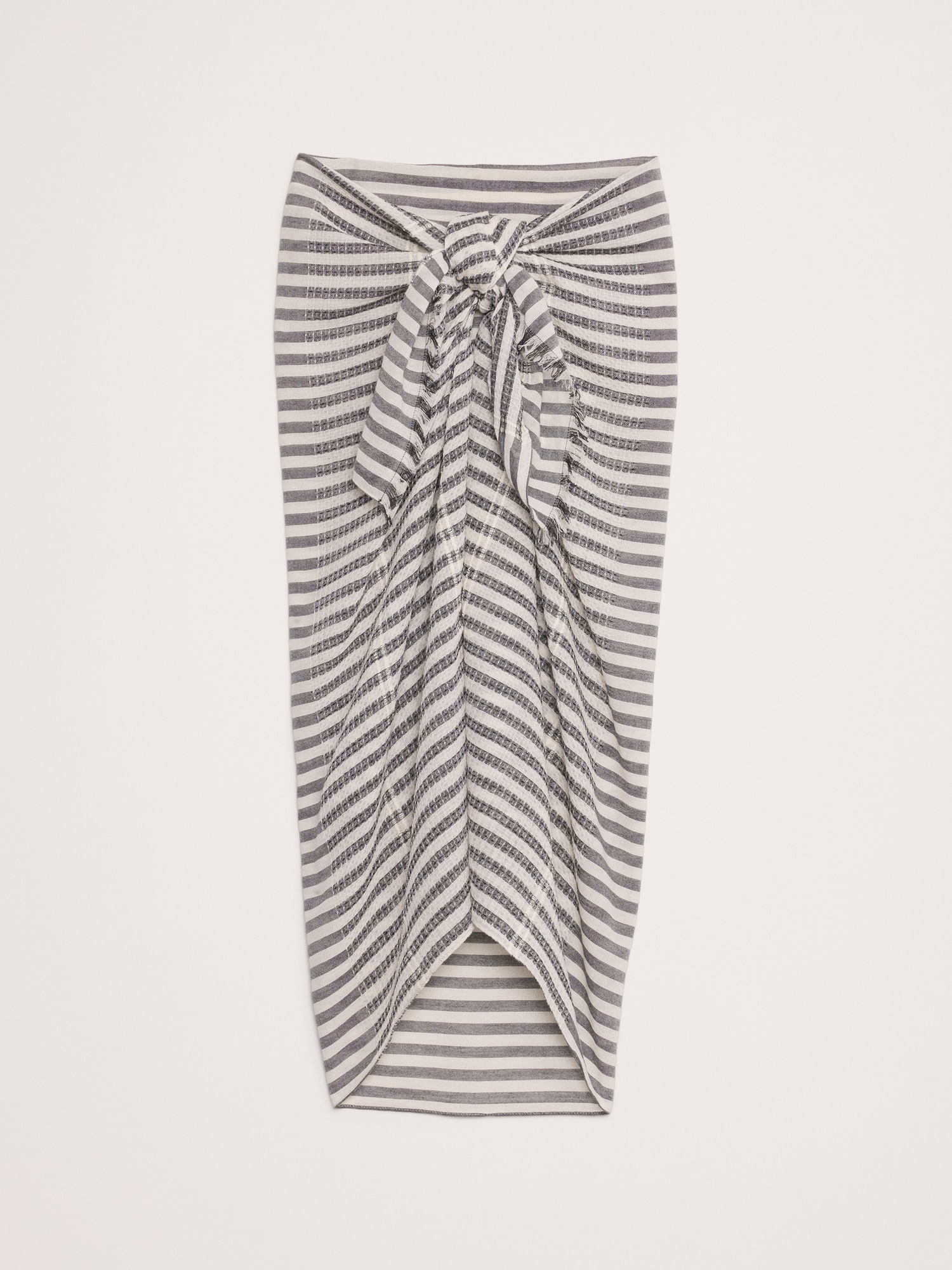 This versatile wrap is cut in an extra-long, extra-wide shape so you can tie it around the waist as an easy swim cover-up or wear it like a shawl when you’re cold. Here, we opted for a lightweight and breathable cotton fabric as it’s ideal in all seasons.