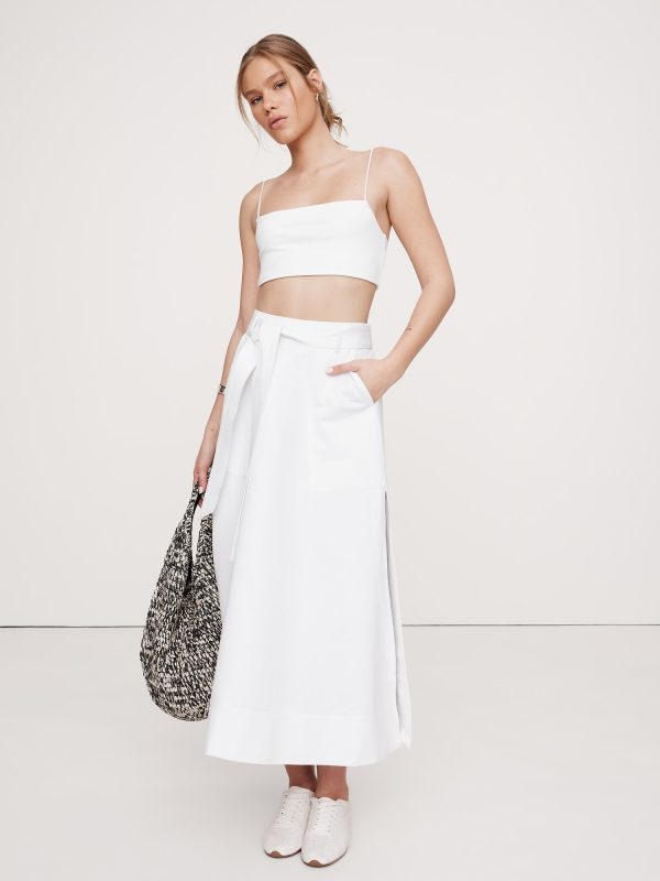 A nod to our utilitarian heritage, this maxi skirt dials up the drama with high slits at the sides. This one’s crafted from a beautiful cotton sateen fabric so it has a sophisticated shine to it and is oh-so-soft. Style it with a cropped top and sandals on warm days or pair it with oversized cashmere and flats.