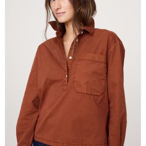 You love this oversized shirt so much, we had to bring it back. This popover shirt is crafted in a cotton twill and finished with a garment wash for lived-in color and extra softness. Oversized fit: Extra room through chest, shoulders, and waist. Dropped shoulder seam. Point collar with button front. High-low hem. #826026