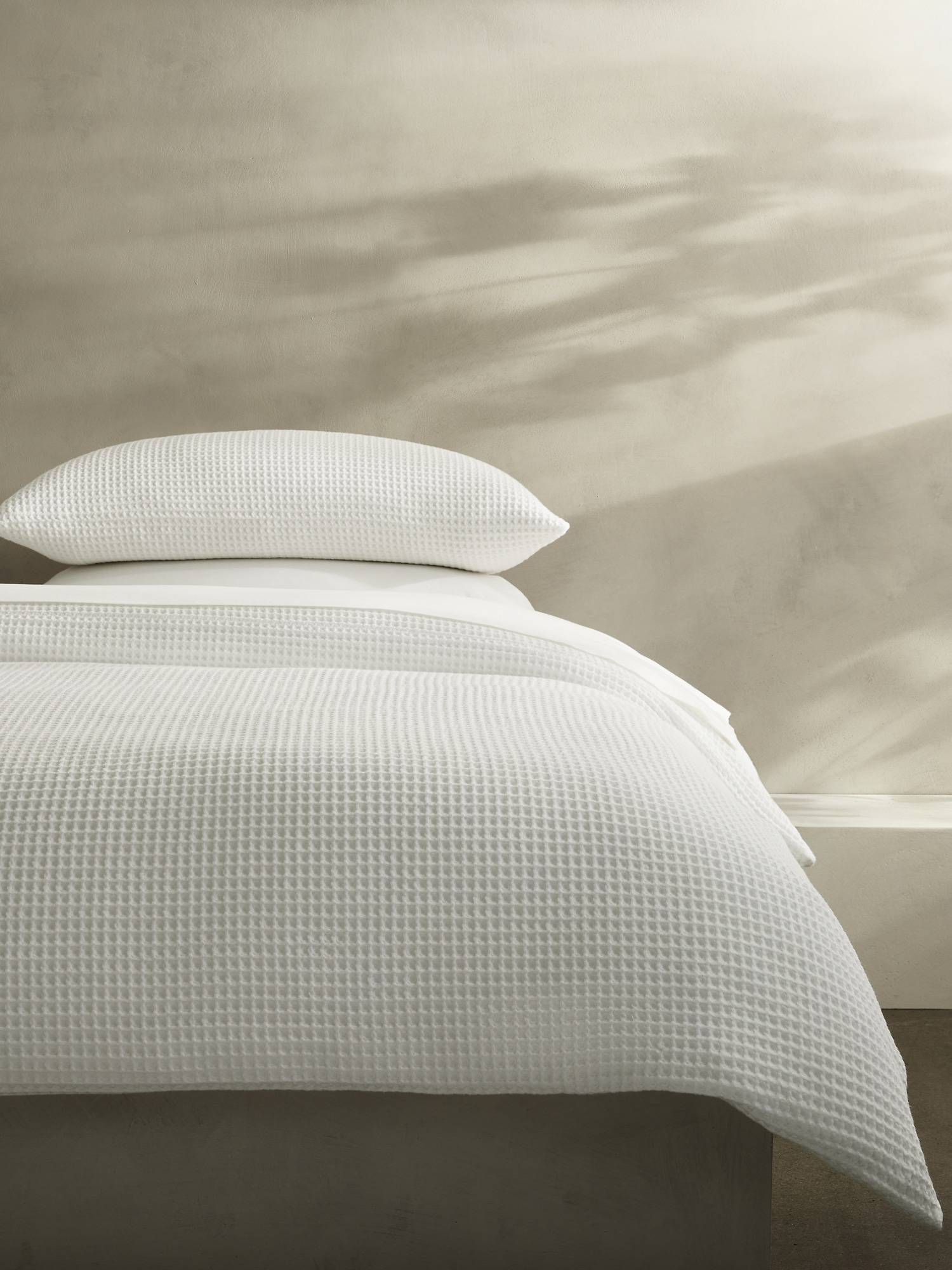 Luxurious cotton, soft and snuggly, is textured with raised ridges that are expertly woven for beautiful, honeycomb dimension in this exquisite waffle-weave duvet cover.