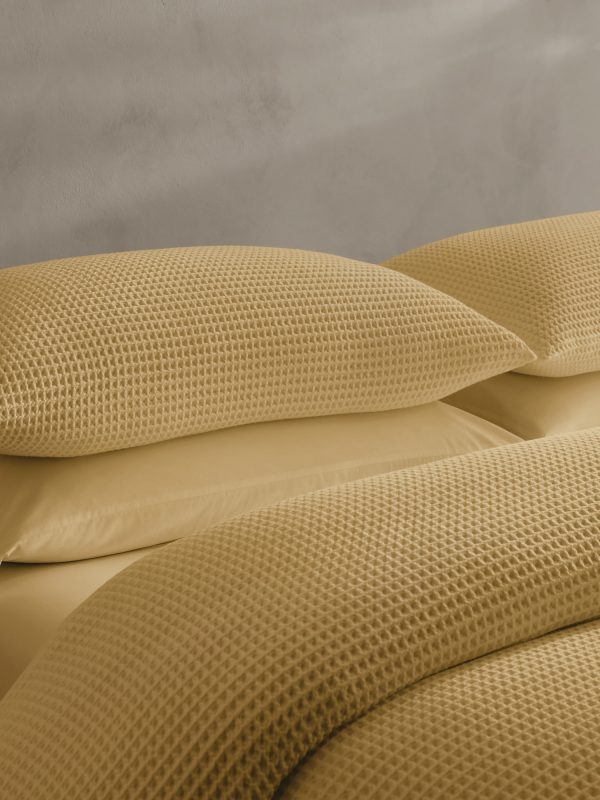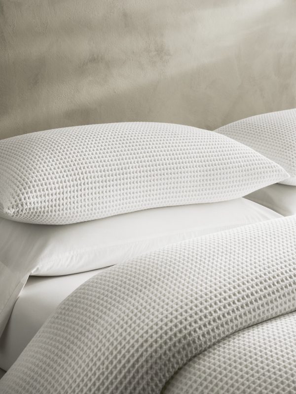 Luxurious cotton, soft and snuggly, is textured with raised ridges that are expertly woven for beautiful, honeycomb dimension in this exquisite waffle-weave duvet cover.
